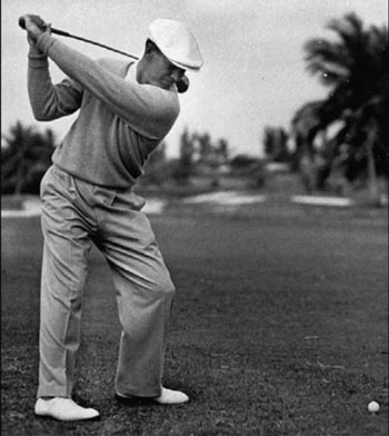 充分转肩是流行高尔夫教学理论的一致看法,霍根对此也非常赞同。他希望球手真正完成完整的肩部转动,而不是通过弯曲左臂达到上杆的效果。