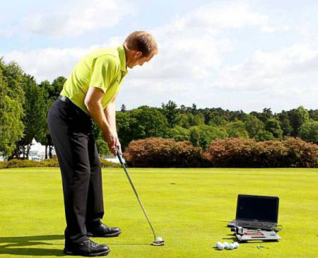 系统设置好后,你可以在果岭的同一点上推球。其它某些测试要求在推杆的杆身上安装一个测试装置,这样容易改变球杆的平衡性,改变击球状态,从而影响测试的准确性和效果。