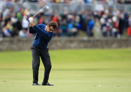 1992年英国公开赛,我的击球方式千变万化。我之所以能打出不同的距离,不是通过上杆或下杆的改变,而是收杆的不同。举例来说,“鸡翅膀”式收杆,你的左臂没有随身体转动,而是张开在身体的一侧,这时杆面会在触球过程中略微开放,可以打出轻度右曲球。这很有趣。