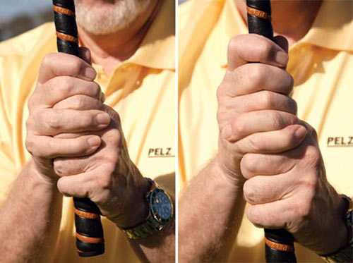 如果你像我的大多数学生一样为劈起击所苦(也就是说,你的触球不理想,无法使球靠近洞边),问题很可能在于你把球杆握死了。握杆力量太大一定会影响到你的果岭边击球手感。然而,如果我只是告诉你,要放松,要减小握杆力量,那应该对你不会有太大的帮助。我找到了一种更好的办法,那就是,采用有助于“感觉”的握杆——它帮助我的很多学生改善了手感,更好地感觉到了他们的劈起击挥杆。