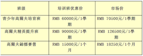 3、高尔夫锦标赛营:本培训中心精心为您设置1个月高尔夫集训课程,帮助您发现自已高尔夫的潜力,推动中国高尔夫事业的发展。