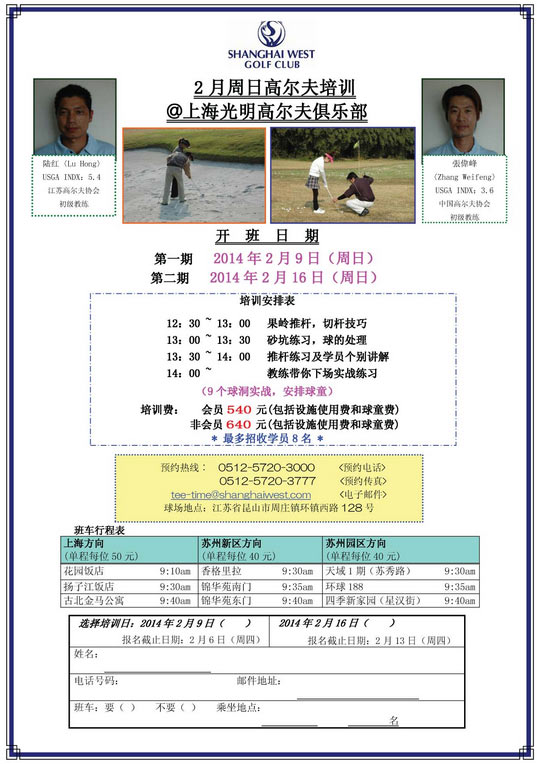 上海光明高尔夫俱乐部2月周日培训教程