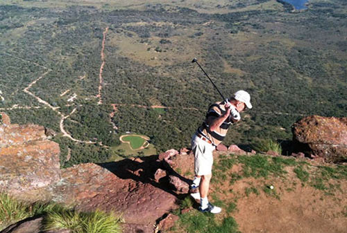 不光国内球友遇到山地球场抓狂,就连里蒂夫·古森和帕德里格·哈林顿这样的世界名将也很难征服落差太大的球洞。古森和哈林顿都打过世界最难的三杆洞——南非传奇高尔夫狩猎度假村的那个著名的三杆洞。该洞发球台和果岭落差达430米,开球时一定要站稳,因为发球台紧靠着山顶边缘。据称,这一洞球在空中的飞行时间接近30秒。哈林顿在这一洞的成绩是世界最佳——标准杆。