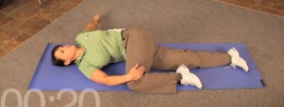 不用球也不用杆,摆出击球的站姿,让你的朋友用双手固定住你的双肩及上半身。然后你的下半身独立来回做旋转运动,来回转动30秒左右。