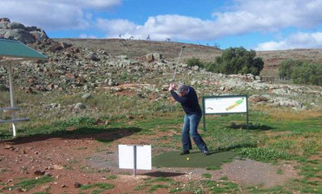 你必须先触球,否则无法使球飞起。站位,大部分体重置于左侧身体,挥杆过程中使其保持不变。接下来,双手在握柄上下移两英寸(5厘米),球对准站位正中右侧一两英寸处。身体向着目标倾斜,鼻子对准球稍偏前方。这些调整有助于做出向下的击打。触球时,你应该感觉以杆面将球搓起。噢,对了,在荒地上,你可以使球杆触地。所以,你应该充分利用规则,试挥两三次,从而更好地感受这种击球。