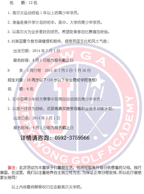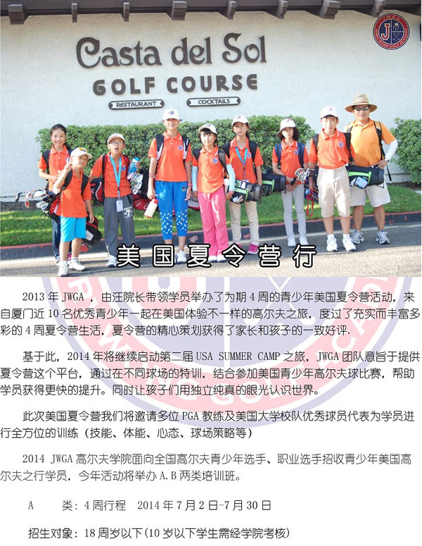 2014年第二届美国青少年高尔夫夏令营招生