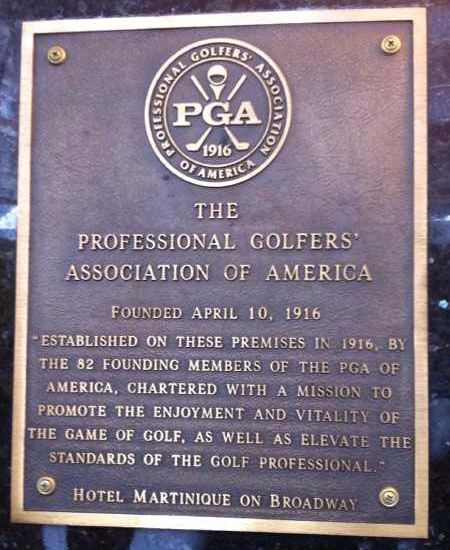 在帝国大酒店旁韩国城的Martinique酒店有一块PGA of America的牌匾。这一下子激起我的兴趣,我只知道PGA of America总部现在佛州花园球场,没想到和纽约城有这么大的关连,而且时光一推就是一百年。