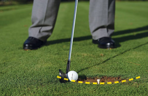 下面方法也许对大家有用:在草地上画一条与目标线垂直的线段。你可以用喷剂在草地上喷,也可以就用球TEE标出一条线来。将杆头底端置于线上。现在用7号铁来做挥杆练习。看看被切的草皮位置在哪?是位于线段的前方?后方?抑或是就位于线段之上?草皮是切得深还是浅?你有用杆头来做“锄头”来锄草吗?这些就是你得到纠正之前要了解的内容。下面有条自我纠正的大致准则,以供参考。