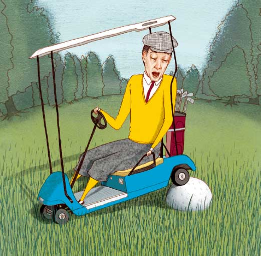 规则专家:我驾球车时,不小心碾过了自己的球,导致球位变得不可打了。我的教练说,此时我的球车应该被看作是球具,要罚1杆。他是对的吗?