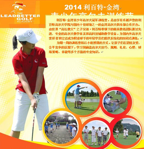 利百特-金湾青少年高尔夫冠军训练营,是由享有卓越声誉的利百特高尔夫学院与国内十佳球场之一的金湾高尔夫俱乐部合作开办。由世界“高坛教父”之子安迪·利百特带领下的精英教练团队通过先进、专业的高尔夫教学体系和高科技辅助教学设备,为国内外高尔夫爱好者和立志成为职业球手的年轻学员们提供系统化的封闭式训练。