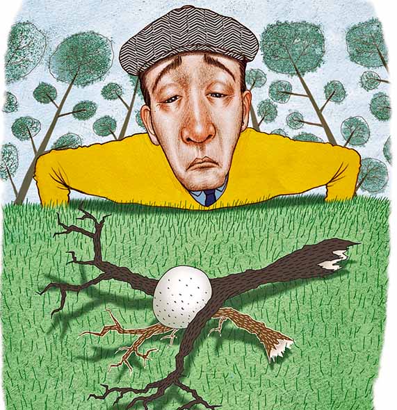 亲爱的规则专家:有一天,我和父母一起打球。我的一记开球停在了一根树枝旁边。