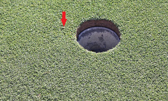 同样,对于高尔夫也一样,选取比球洞更小的目标可以更加集中注意力,可增加命中更大范围的目标(即球洞)的概率。你可以这么做,边看球洞边试挥,然后在真正推球时脑海里出现球洞的画面。这可有效消除负面思绪进入我们的大脑。这个技巧在球员高度紧张时同样适用于减缓压力。