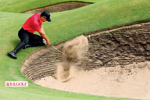 在沙坑里,球员们采取单腿站立状、支撑状的画面比比皆是。我们会发现高尔夫一下子涌现出很多种打法,而这些打法是在其他类型球场看不到的。