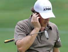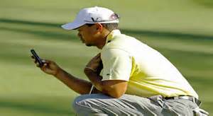 鉴于他一直提其它的比赛都不准用手机,如职业赛。于是,我google了几张高尔夫名人在比赛期间用手机的相片发给他。