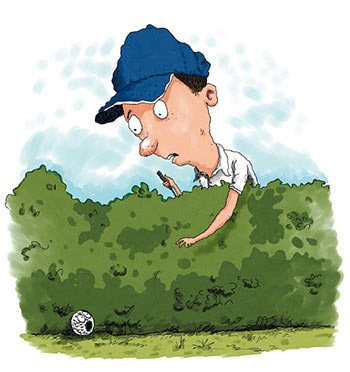 如果你是“聪明人”,读到这里你肯定就想到了,他干嘛犯险找球呢?的确,老老实实地打暂定球,放弃找不可打的第一颗球,有时候并不吃亏。