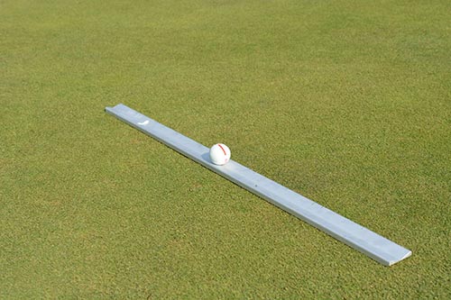 果岭速度测定的工具:一把斯蒂姆果岭测速仪、三颗高尔夫球、三个Mark、两个球座或两支铅笔、一张记录纸、一把5米测量尺。