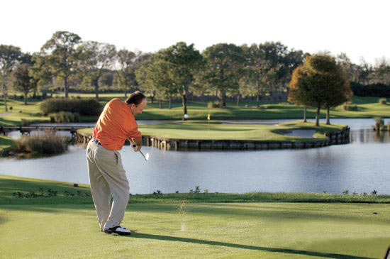 面对高尔夫岛型果岭 击球进洞还是下水捞球