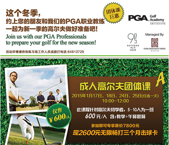 北湖九号PGA高尔夫学院冬季团体课即将开课,拨打练习场电话:010-64813729咨询课程详情。