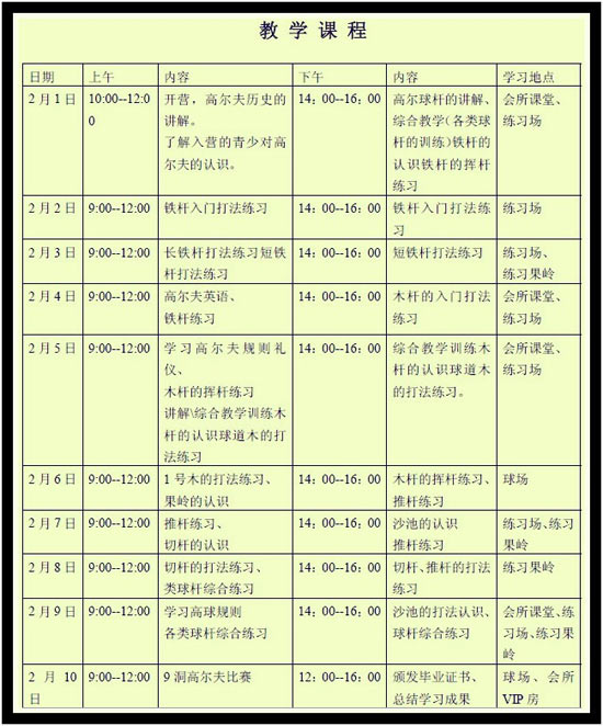 5800元/人 广州莲花山高尔夫球会寒假冬令营