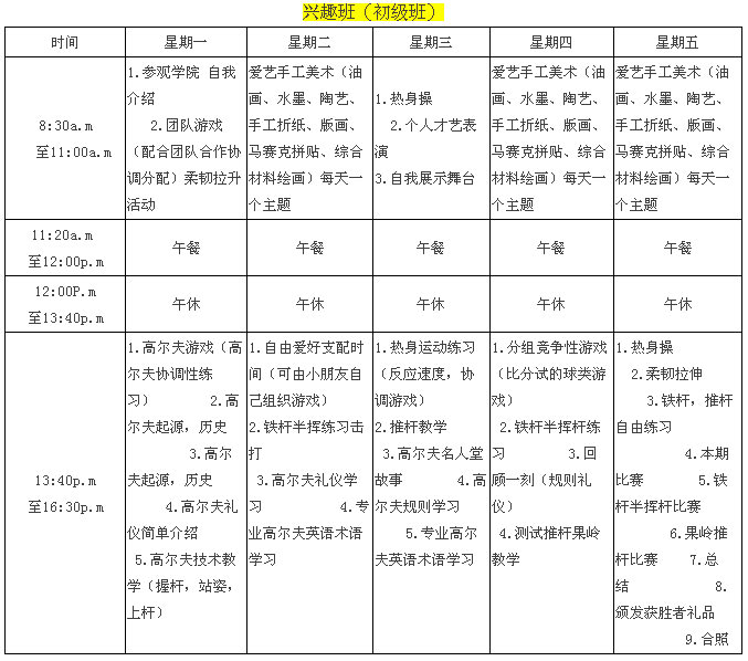 活动主题:青少年高尔夫兴趣班冬令营