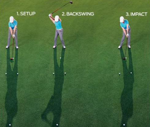 这是来自美国《GolfDigest》网站上的一篇文章,它需要球员使用三颗球,一颗球放在影子的脖子处,两颗球放在影子臀部两侧,这样就固定了两个最重要的身体转移部分,球员自己挥杆纠错就一目了然了。