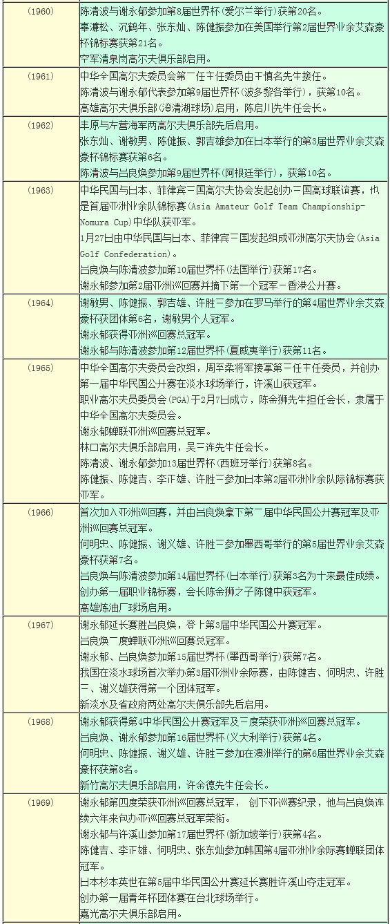 台湾高尔夫发展简史(1960-19 69年)