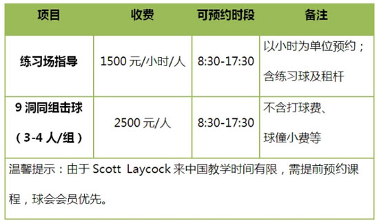 Scott课程及同组击球收费标准: