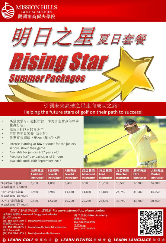 观澜湖高尔夫学院明日之星夏日套餐