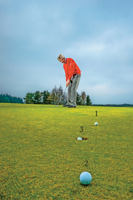 用三颗球高尔夫练习推杆 掌握果岭速度