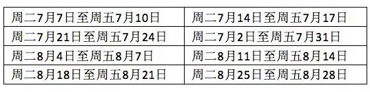 二、时间:7月7日---8月28日(每周二至周五)