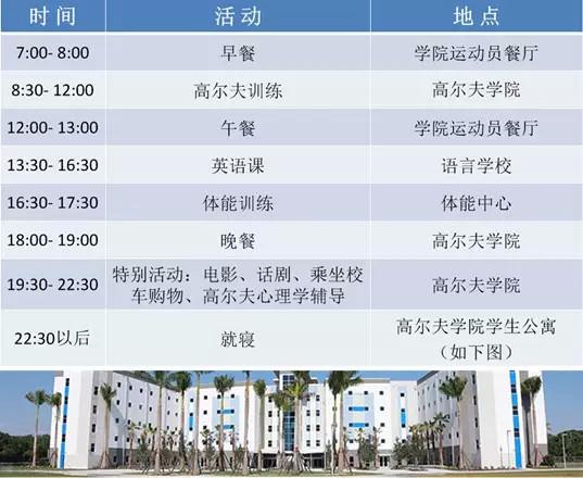 (备注:对于选择2周或多周都是高尔夫培训学生,周六和周日都将参加学校组织的活动或比赛)