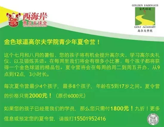 海南西海岸高尔夫2015夏季金色球道夏令营