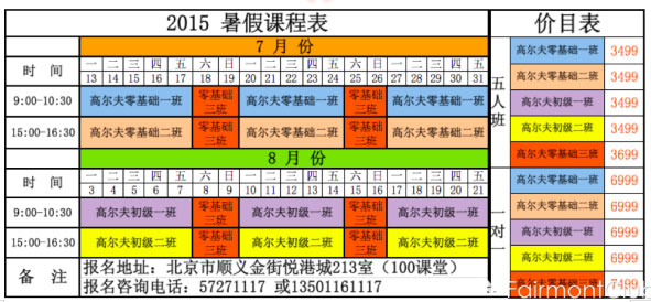 北京费尔蒙青少年高尔夫球训练营暑假班(顺义站)