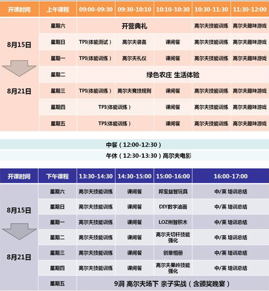 2200元/人 江苏镇江裕珑湾高尔夫夏令营