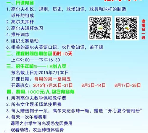 1000元/人 山东杨宁高尔夫俱乐部夏令营