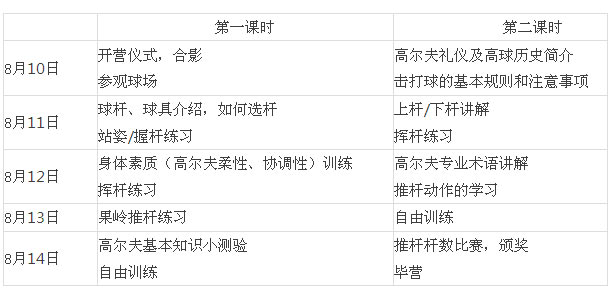 湖州高协第四届青少年高尔夫训练营活动计划