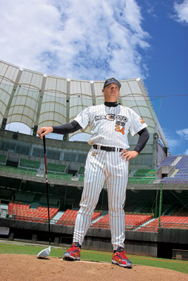 应记者要求,睽违多年后,杨骐嘉穿上已经「绝版」的Cobras球衣,再次站上天母棒球场的投手丘。这一次,他手上拿的不是棒球手套与棒球,而是nu自行开发的开球木杆。在投手丘上三振打者、拉弓振奋的画面已经成为历史;这一次,他要和nu高尔夫品牌,在高尔夫市场上,缴出一张更亮眼的成绩单。