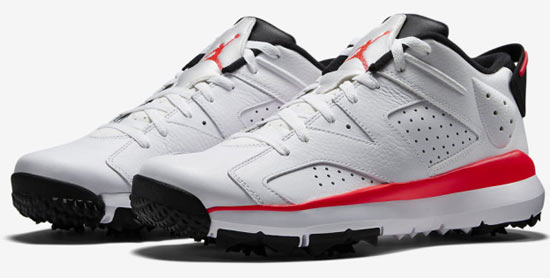 因篮球传奇迈克尔-乔丹在高尔夫界的影响力,乔丹品牌推出了以旗下最热门的air jordan系列为基础的Air Jordan VI Retro高尔夫球鞋。
