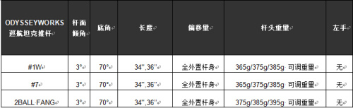 一种指杆头和握把都有可调配重,在杆头采用可调式配重块,有三种不同的配重块可供选择。在握把后端也提供三种配重块。握把与杆头调节搭配,有多种重量组合供球手选择,总能找到一款球手习惯的杆头重量,配合合适的整杆平衡点,获得远胜于以往的绝佳平衡性,实现更加稳定的推击。