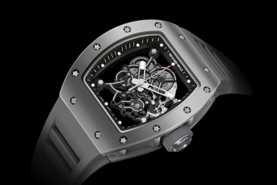 RM 055 Bubba Watson表款的最大特色,在于它是针对高尔夫运动所设计,能承受高达5000G的冲击力。换言之,即使挥杆力道强如华生,戴着挥杆也无需担心损伤。2015年的All Grey Boutique Edition款式,灰黑钛合金表壳质感极佳,镂空机芯以四颗避震螺丝和表壳衔接,强化其抗震性能。RMUL2手动上炼机芯,则提供55小时动力储存。