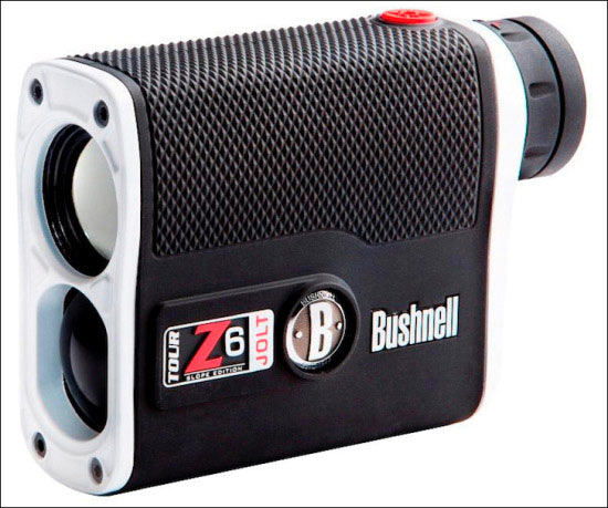 全新Tour Z6 JOLT坡度版是倍视能(Bushnell Golf)专为亚洲市场推出的一款最先进的测距仪,它是所有Bushnell测距仪中体积最小、手感最好的,并仅在亚洲市场有售。Tour Z6 JOLT内置一系列先进的镭射测距功能,拥有强大的6倍光学变焦,放大显示更精确,最大误差值仅为0.5码;视野测距范围5~1300码,旗杆抓取测距范围达450+码,其先进的VDT显示技术,在各种光线下都能有清晰的显示效果,优质光学镜头上有镀膜保护,而且高精防水设计,能适应雨雪天气。