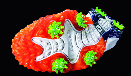 FreeStyle系列球鞋在实现自然运动灵活度的同时,兼具创造更多能量所需的关键因素——抓地力。该系列球鞋无可匹敌的抓地力灵感来自红眼树蛙,其在任何平面都能保持绝佳抓地力;于是,F.R.O.G.S.外底技术也便如此诞生了,该技术凭借牵引力元素增加挥杆过程中的地面接触点,适用于所有天气和足部运动条件。
