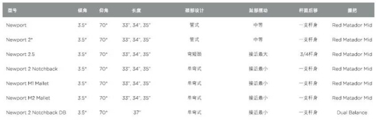 每一款全新的Select推杆,均配备可更换的不锈钢杆底跟趾部配重螺丝,无节钢杆身和手感柔软的Red Matador Mid-size握把(Newport 2 Notchback双平衡推杆配备双平衡握把)。