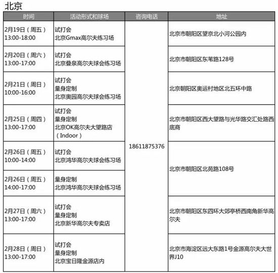 Titleist高尔夫 2月份北京试打体验活动安排