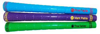 这家名为puregrips.com的公司允许顾客在网上订购属于自己的个性化握柄,通过该公司的网站你可以选择底色和配色,并添加字母、图案或Logo。 值得一提的是,你需要处理胶水或胶布,所有握柄都是由粘性橡胶制成,由末端加压注气,握柄可以直接粘在杆身上。 售价为13支/140美元。