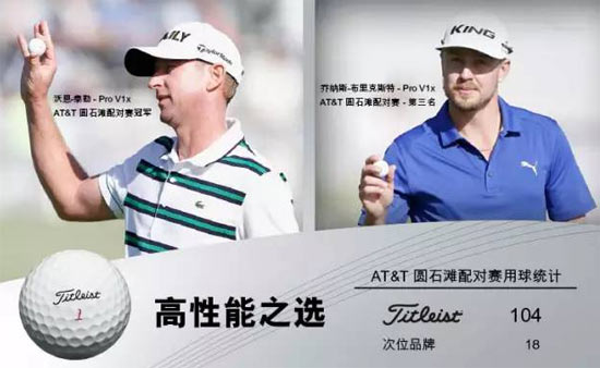 Titleist 高尔夫球是圆石滩配对赛参赛职业选手的首选,156名参赛选手中就有104 名选手(67%)信赖 Titleist 高尔夫球,近6倍于次排位品牌的18名。