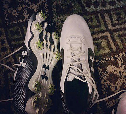 在Under Armour官网上,有三款高尔夫球鞋即将解开面纱,Drive One的鞋帮为网格结构,鞋子后跟的设计灵感来源于该品牌其他运动鞋品,主要设计理念是保持脚后部的稳定,根据对Drive One的描述来看,鞋底安装了Champ Zarma Tour鞋钉。但是最近斯皮思大部分时间穿着的都是新款Champ PiviX。