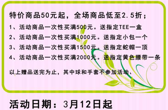 南昌保利高尔夫俱乐部专卖店春季特惠