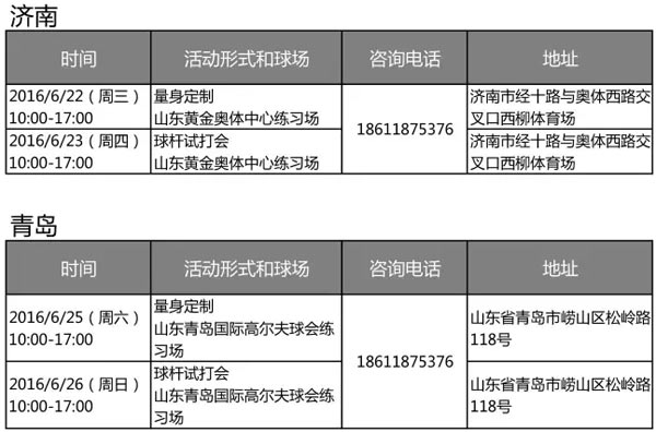 6月山东地区 Titleist 高尔夫市场活动安排