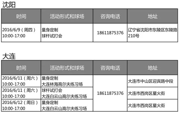 6月辽宁地区 Titleist 高尔夫市场活动安排